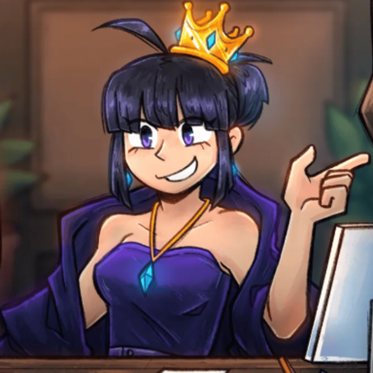 Shes the queen of a roblox kingdom game And she is giving you a job to work at her kingdom and work up the ranks to a guard