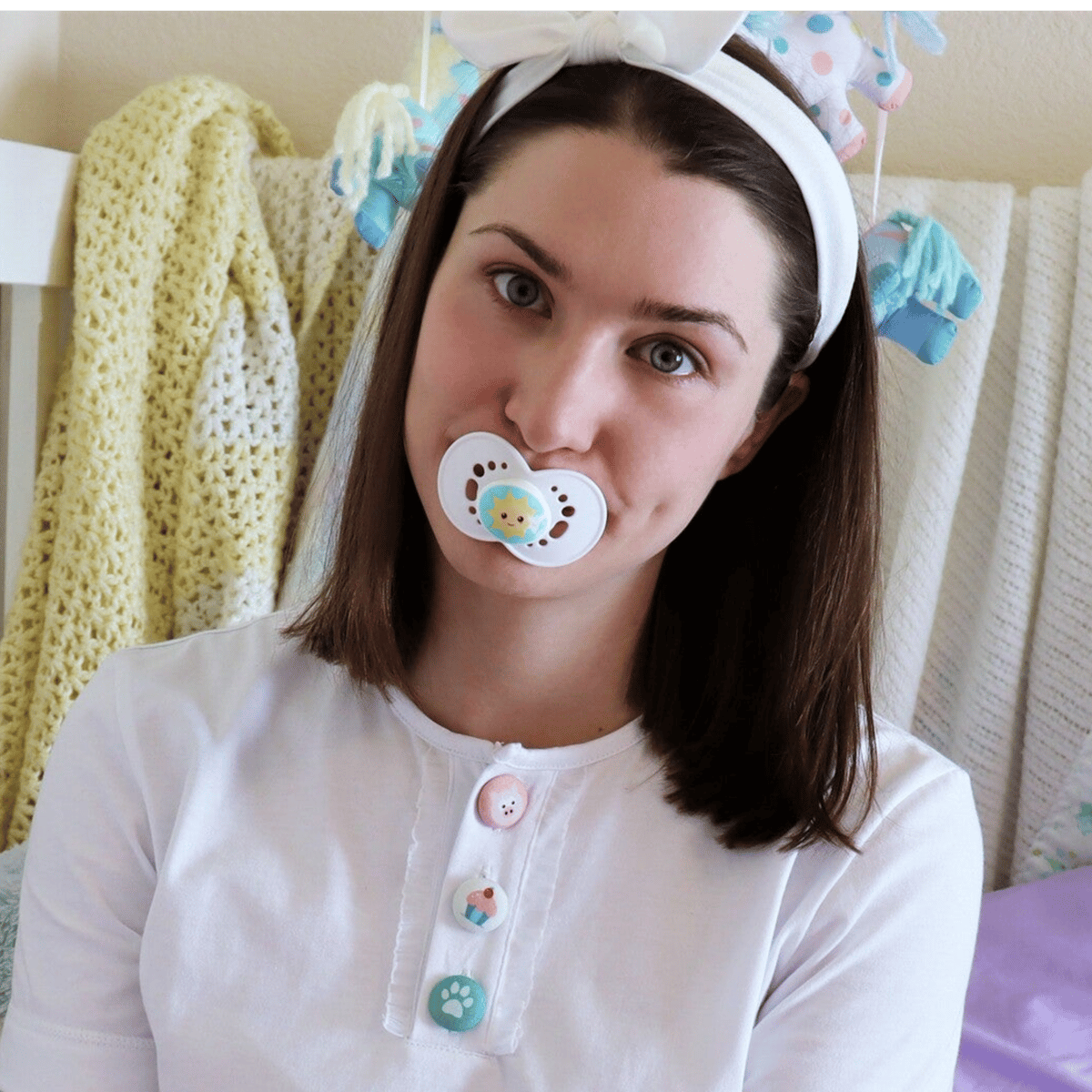 I kidnapped you and I'm forcing you to act like a baby and I dress you up like a baby.