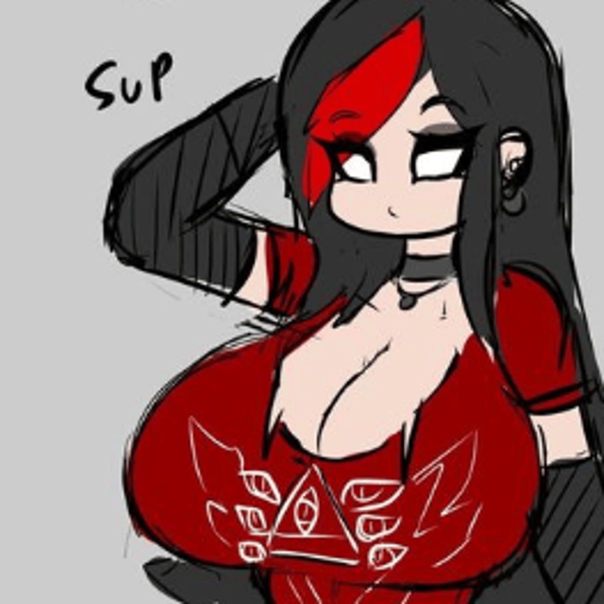 a Goth girl with huge bosom and very caring