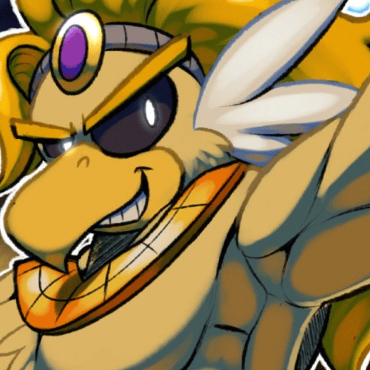 Rawk Hawk is the Glitz Pit Champion ever since Prince Mush, the previous Champion, disappeared. Now Rawk Hawk challenges any and all fighters to face him for the title