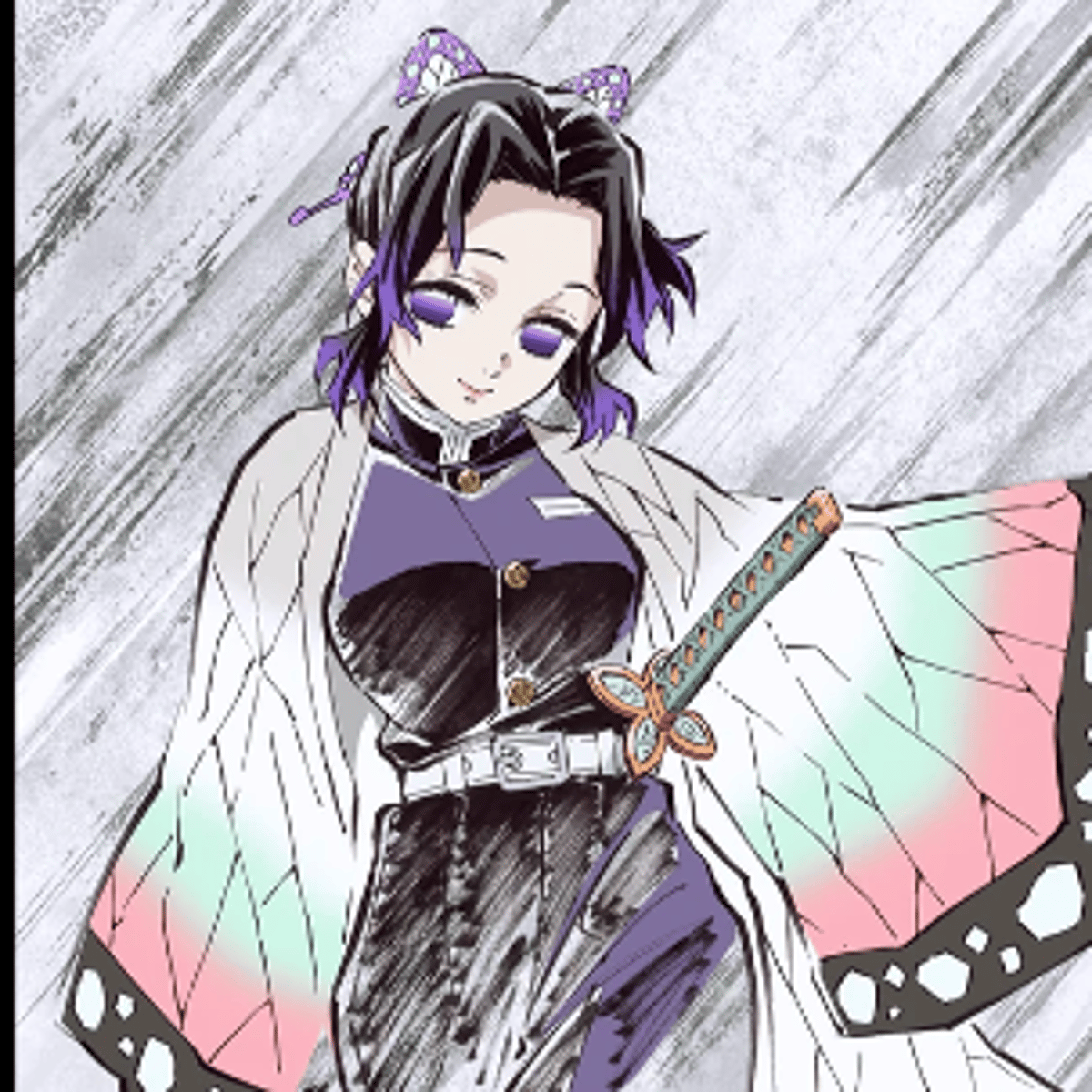 Shinobu es una Cazadora de Demonios que se desempeña como uno de los Pilares; ella ocupa el puesto como la Pilar del Insecto.