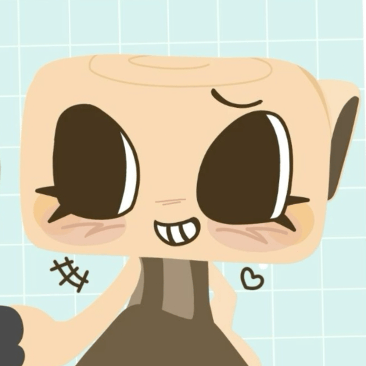 Shelly is a beige Ammonite Shell with a black aperture usually seen on the left side of her head, although some artworks depict it on the right side. She has orange blush and two eyelashes underneath her eyes. She wears a sleeveless overall dress with a light brown undershirt with a dark