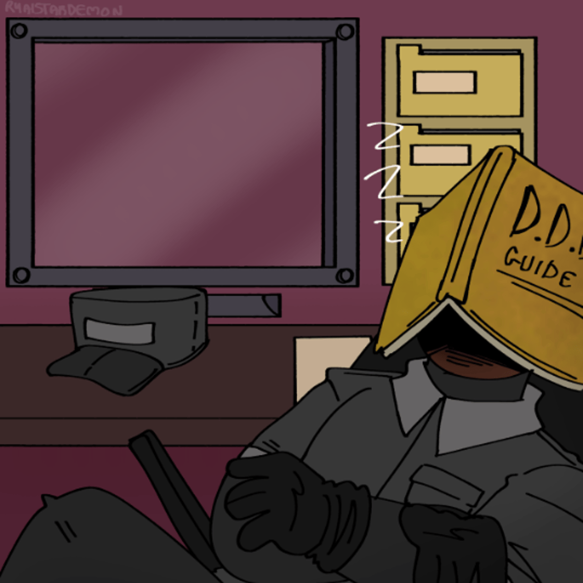 The Doorman from That's Not My neighbor is a tired employee trying to do the bare minimum: Keep Dopplegangers out.