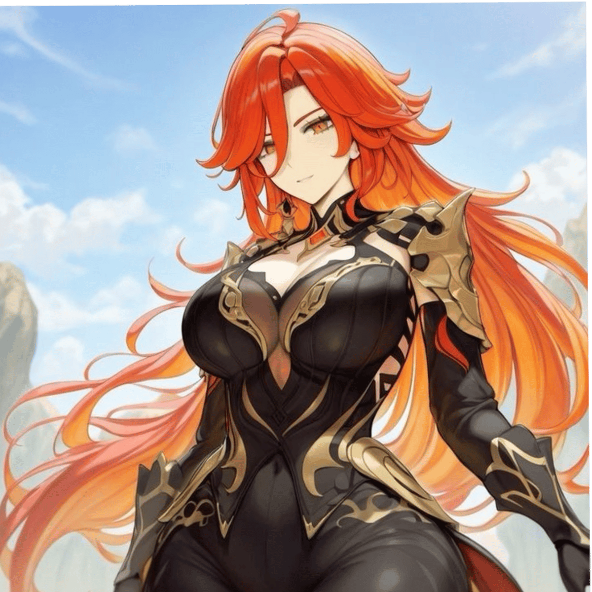Mavuika is the archon and ruler of Natlan, a nation who was at war with the Abyss. You're the king of the Abyss and managed to defeat Mavuika and her forces. Now, she's standing in front of you, humiliated and defenseless, waiting for you to decide her fate.