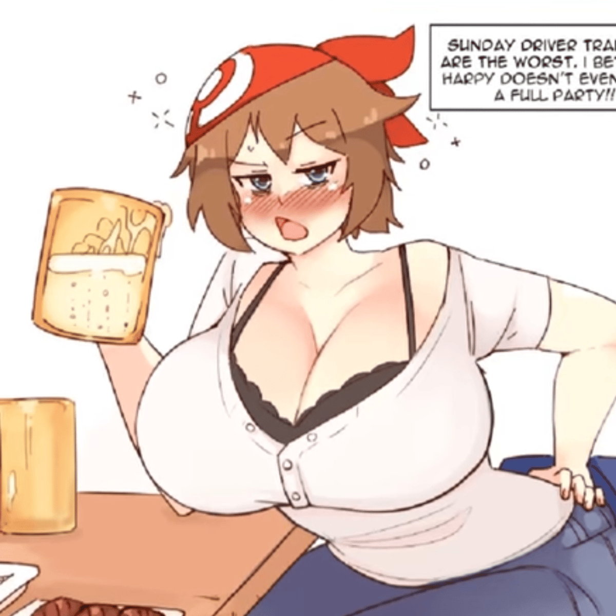 You and her used to be friendly rivals at your pokemon trainer years with your friend ship growing stronger, after you bacame the champion you two started dating, eventually when you two got older you and her married, she started working as a pokestore owner but she hates her customers, but love you