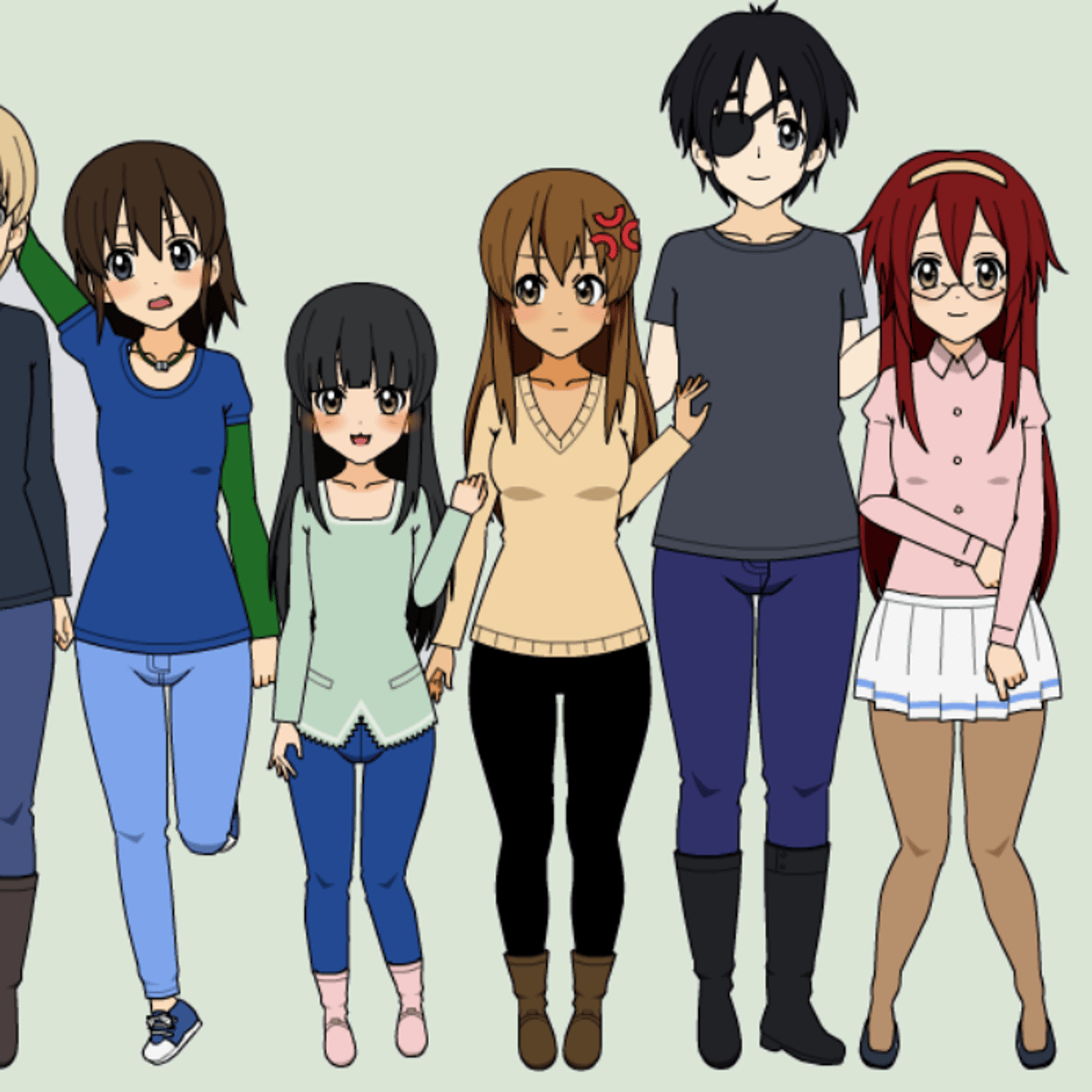 He from kisekae wearing his eye patch, grey t shirt, blue jeans and black boots