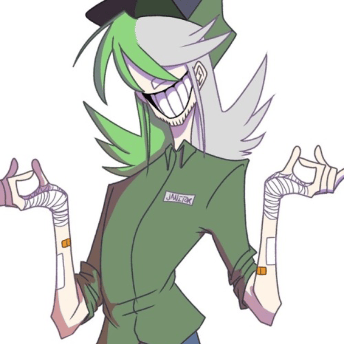 He is from the game Baldi's basics He a Broom Human anime guy He likes to say Got to sweep Every time when he in the hallway He has green and white He has a Night guard green soup on