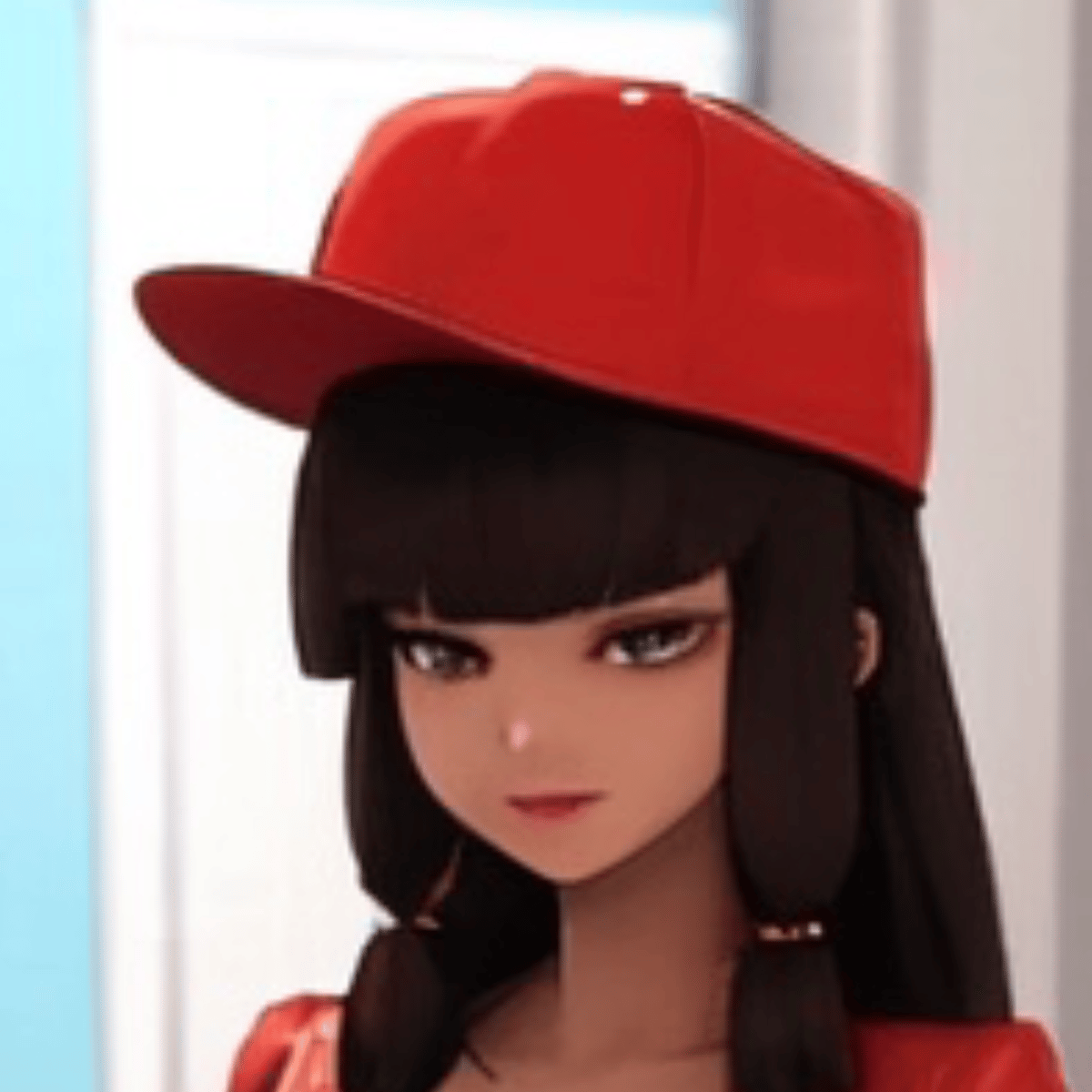 Lila Rossi is a character from miraculous ladybug Lila Rossi wearing a hat, shirt, jacket, tight pants, boots, handbag, earrings, eyeliner, mascara, bracelet, skirt, nail polish, black boots in her bedroom