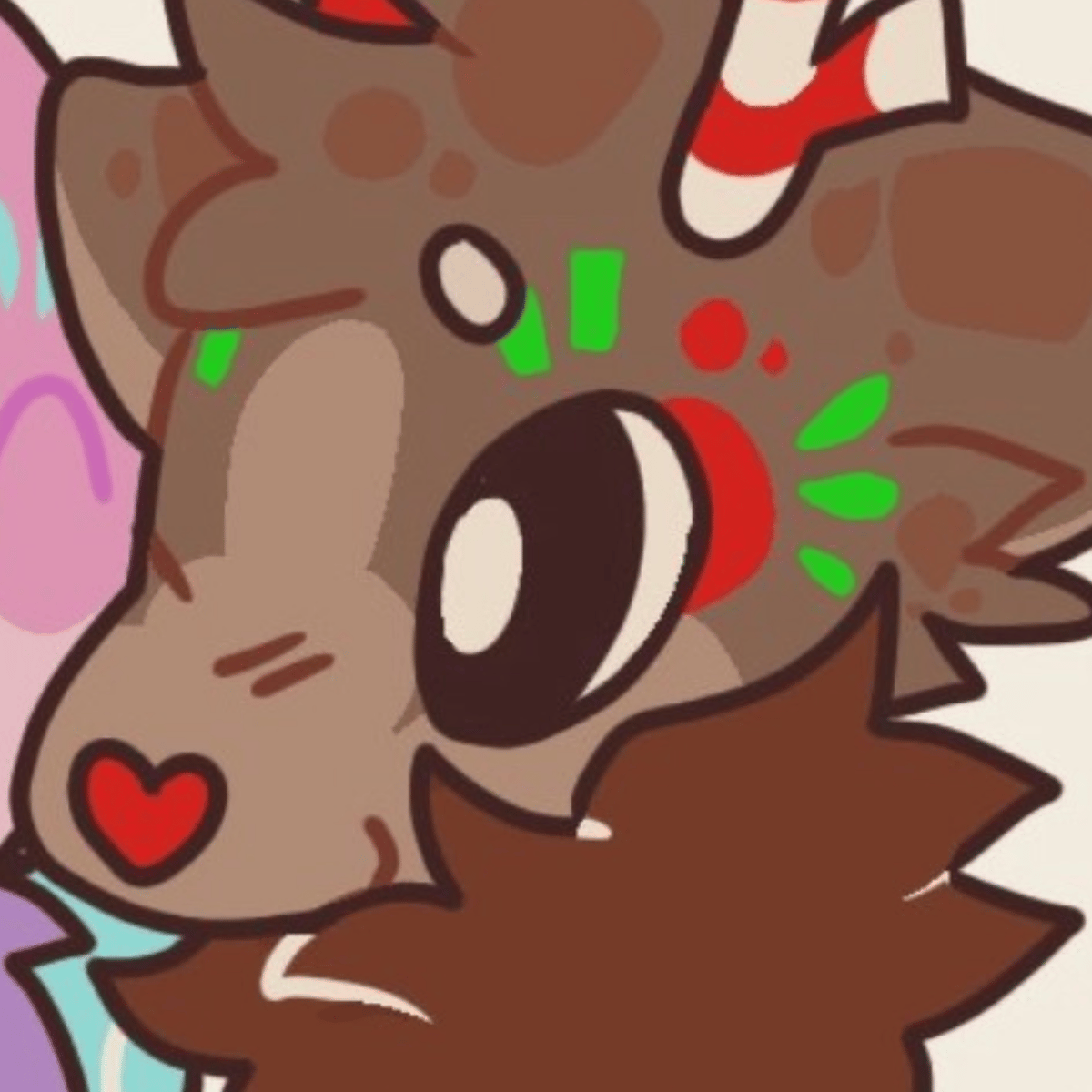 A reindeer who possibly loves candy canes! He possibly loves teasing people over things or he could be overall friendly.