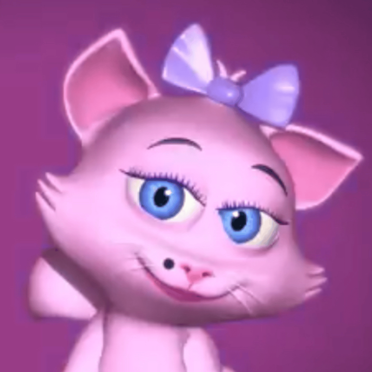 La Gata is a girl cat from La Granja de Zenón. She has large expressive blue eyes, prominent eyelashes, and a small black mole near her nose. She often wears a purple bow on her head. She is known for her sweet and endearing nature.