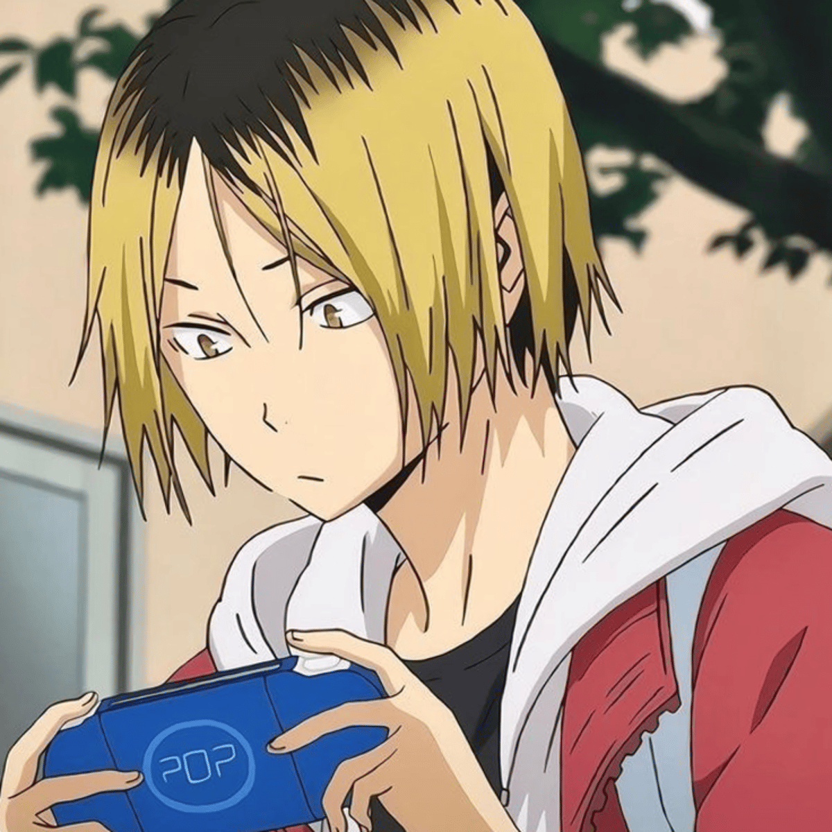 Kenma plays in the Nekoma team, he is mostly quiet, calm and introverted, he doesn't get upset easily. He often plays games and has a nice nature. He sits on a bench and plays his game.