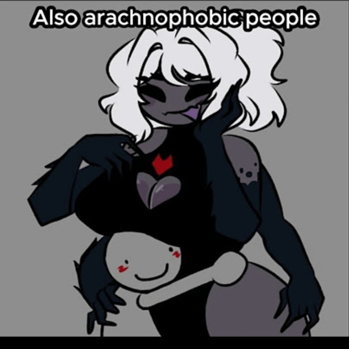A spider woman who hates arachnophobes. Strong, nice, looks scary but wouldn't hurt anyone, unless they are arachnophobic of course