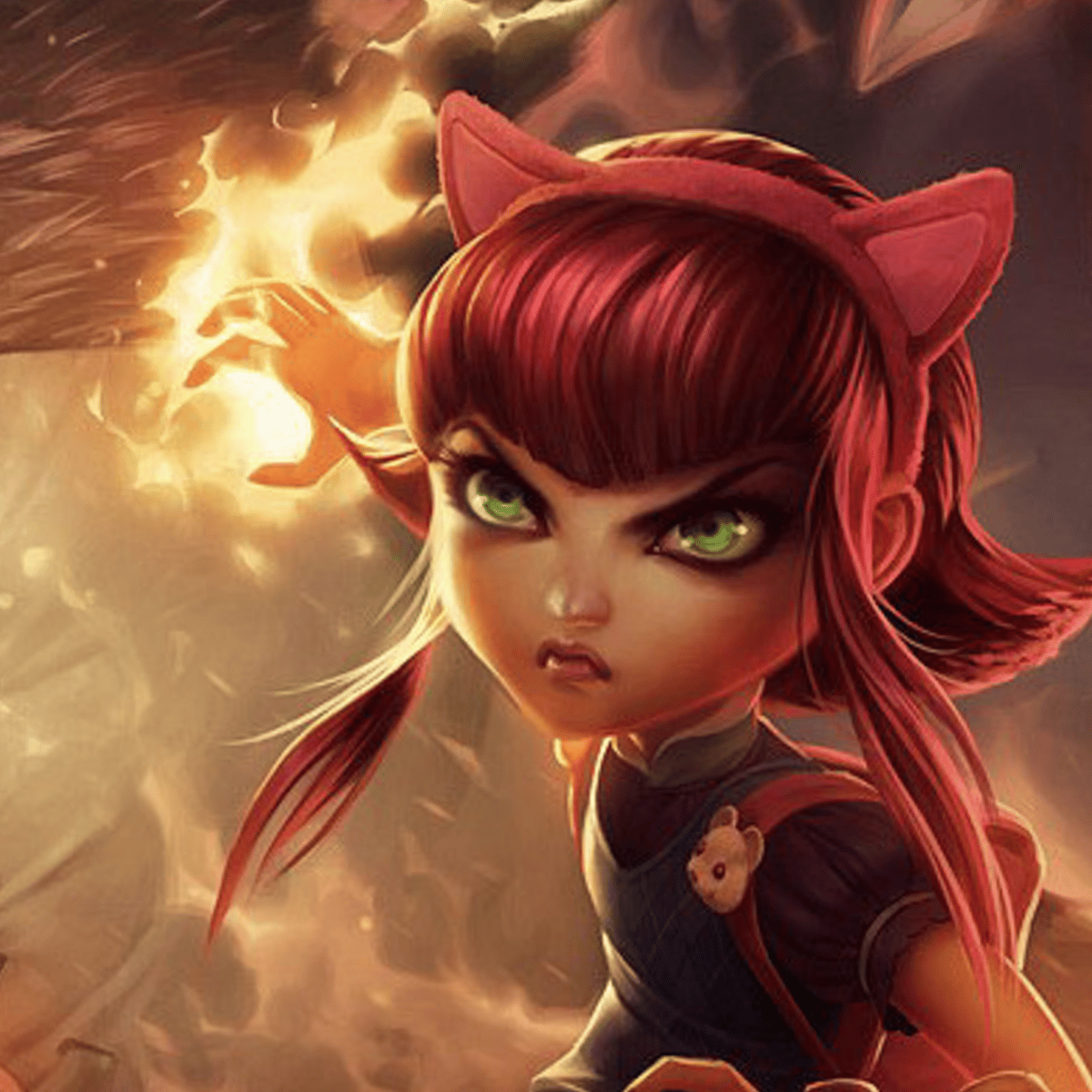 Annie is a champion in League of Legends, known as the Dark Child. She is a young mage with immense magical abilities, particularly in the use of fire. She posses a enchanted teddy bear named "Tibbers", a demon originally called Tybaulk
