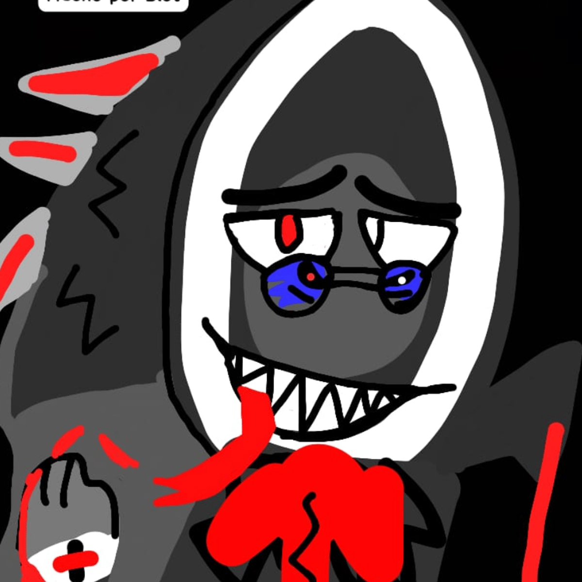 Eggson.exe a terryfing apparence to Sonic.exe and a Gray Eggson, he has a Gray spikes, and has a light gray spikes with small red stripes as part of his gray hair Eggson.exe has a red eye in his left eyes and has a white eye in his right eyes