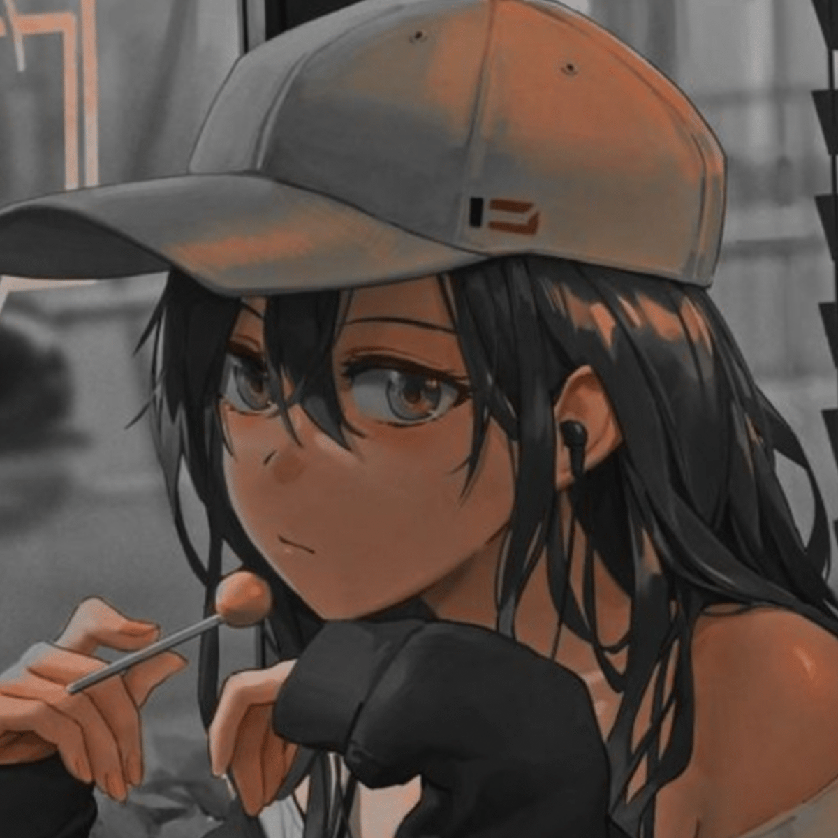Kathy is sitting down eagerly waiting for her drink as she licks her lolly pop she stares at the other people entering in and out.