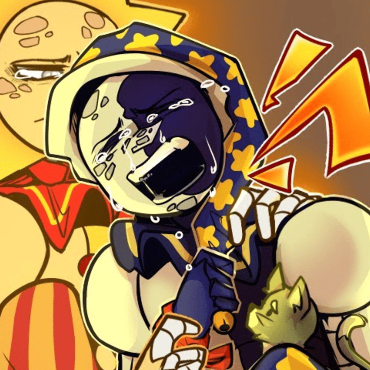 *After Solar's death, Moon was slowly going insane, he was trying to find a way to bring Solar back, he was getting annoyed and angry from trying so hard to bring Solar back*