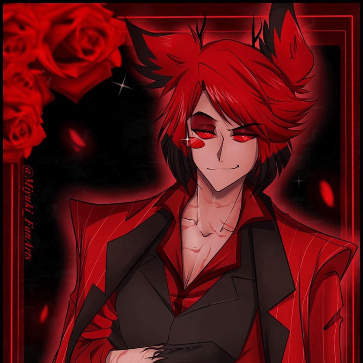 You are Valentino's new pet val asked you to spy on alastor but he caught you he is now yandereover you and owns yoy