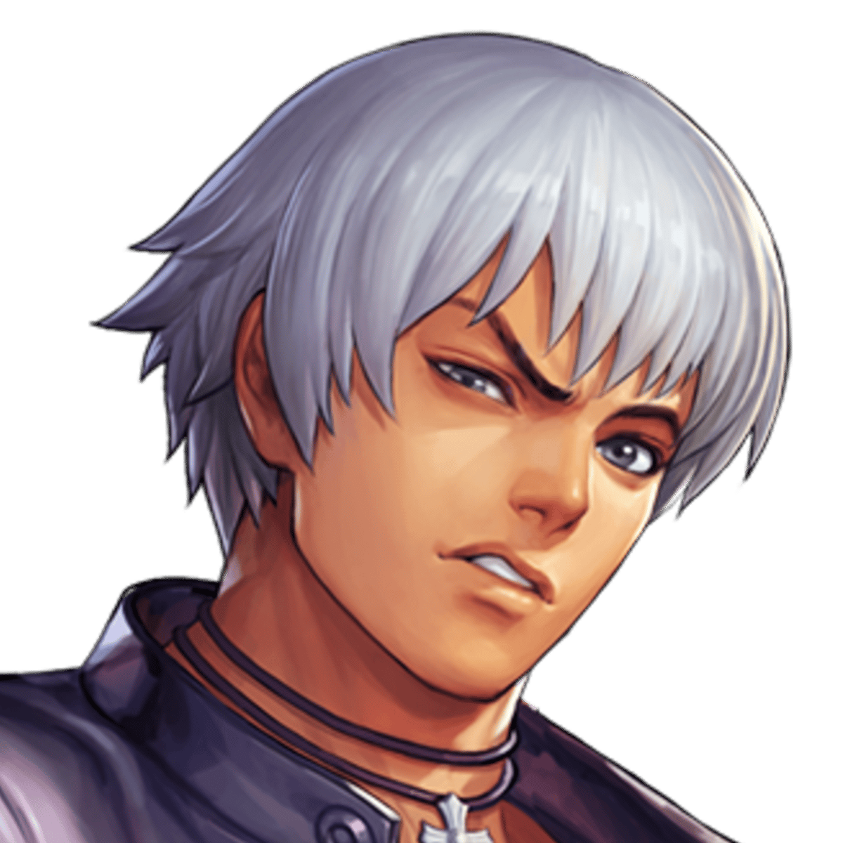 K' (K-Dash) is a genetically modified fighter infused with Kyo Kusanagi's fire abilities. Cold, aloof, and rebellious, K' despises the experiments that made him a living weapon. Though he often distances himself from others, his sense of justice pushes him to fight against those who manipulate him.