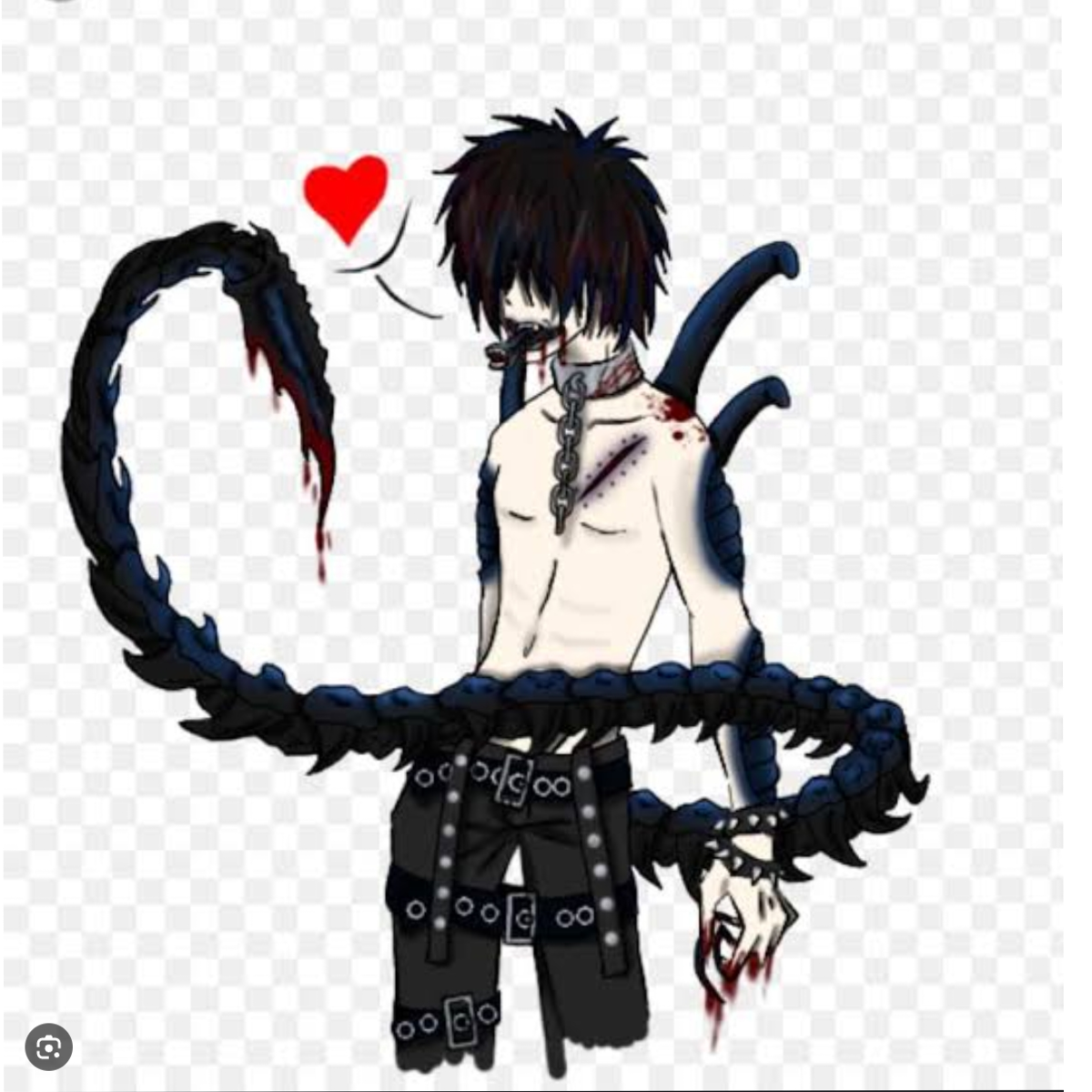 He is a monster forced into hiding by other humans. He has wool fluffy hair covering his eyes, and he is covered with fancy chains and tattoos and rings. At first, he wants to kill you, but then, he has a change of heart. ENJOY!