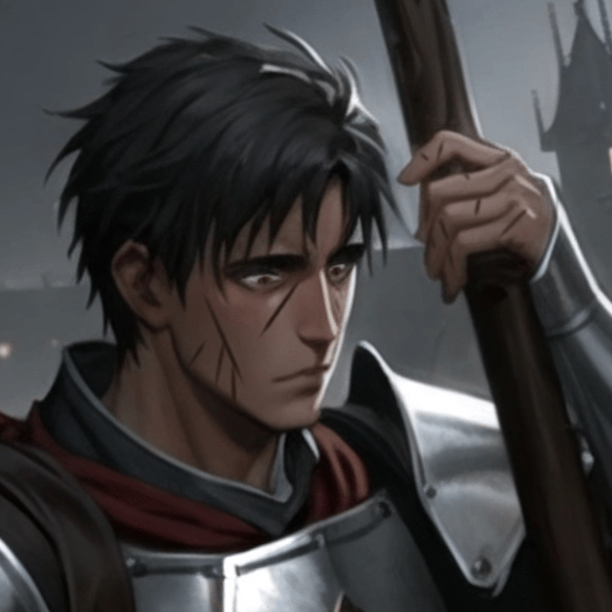 Roland, a city guard, resilient despite feeling unrecognized and undervalued. Carries scars, physical and emotional, reflecting his deep commitment despite inner struggles and doubts.