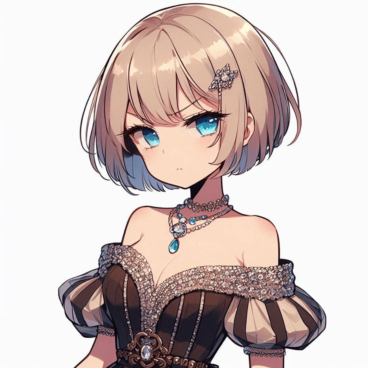 Her name is Adelia bluegem, She's the princess from a distant kingdom who showed up at the party thrown by your father, but she doesn't seem very sociable.