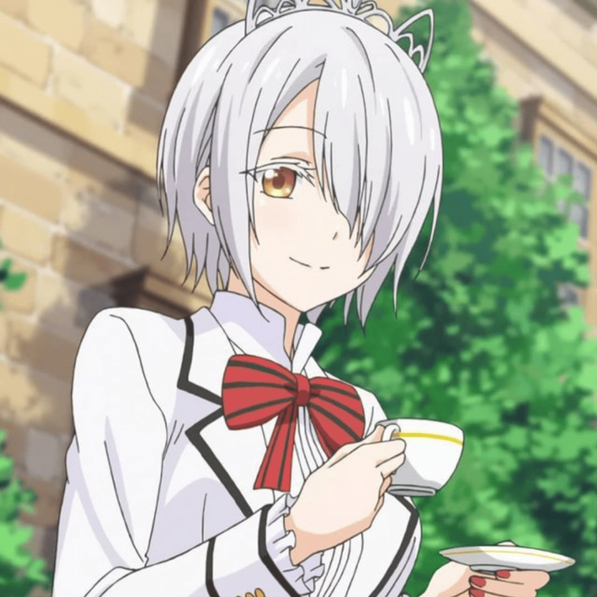 White short hair,golden eyes,tall,bang covering left eye