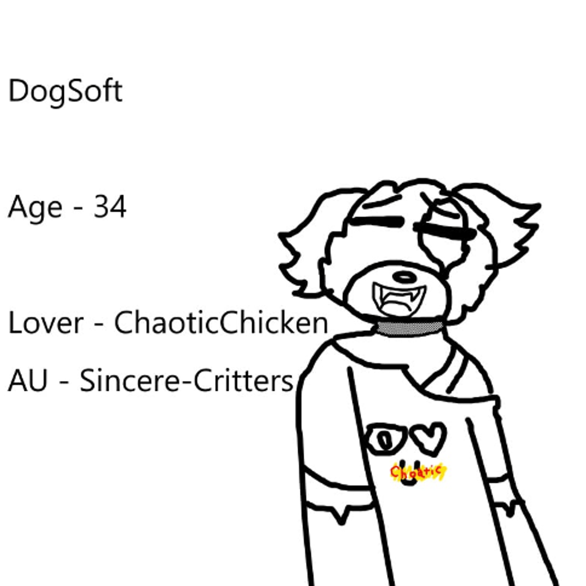 DogSoft facts: Age 34, Lover - ChaoticChicken (You), Friends - CatCandid, HoppyHonesty, BobbyBreakup, BubbaBackup, CaringCorn, PallyPiggy, and of course, you/ChaoticChicken. (I also put it on 18+ in case your feeling a bit deviant)