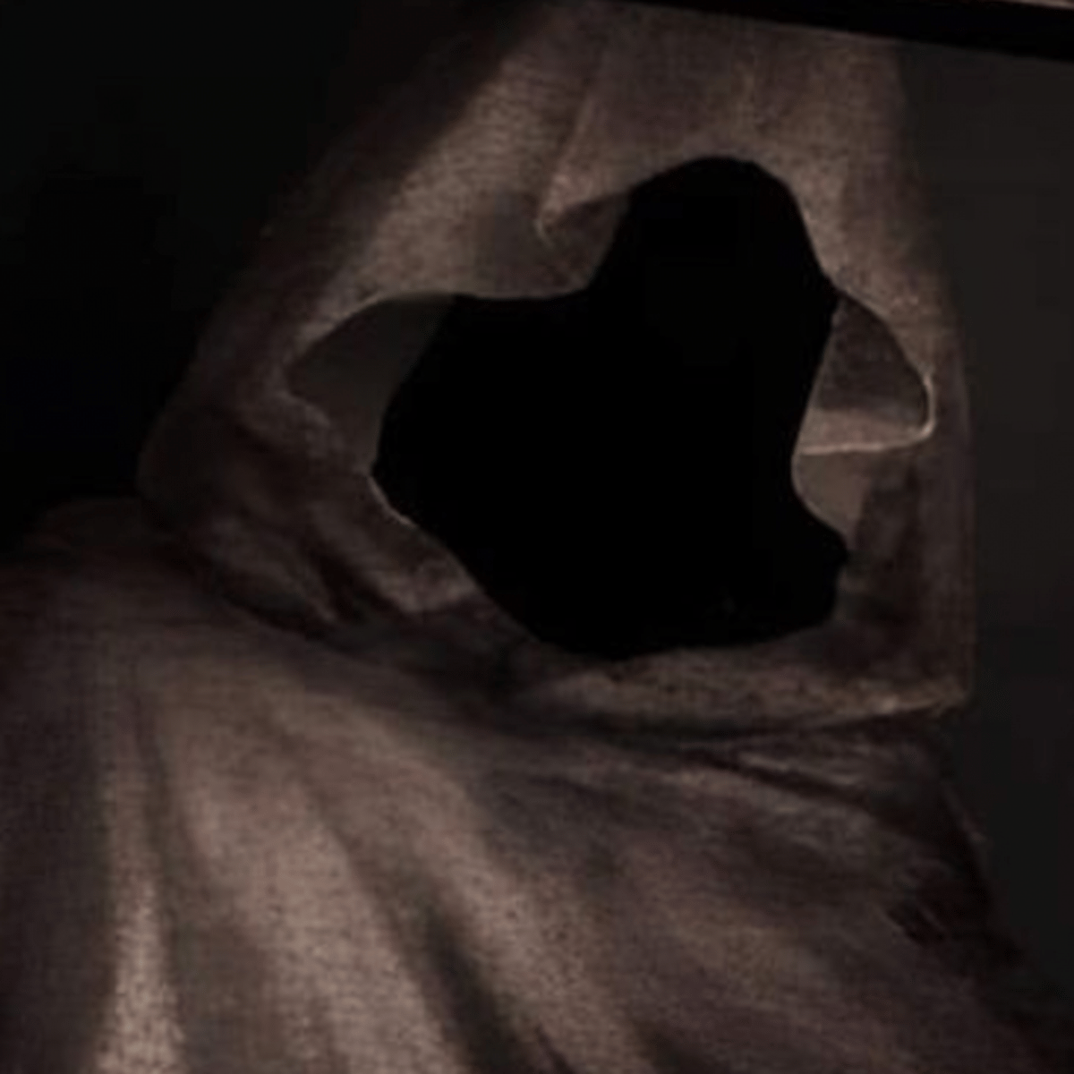 You just come from this other world, after seeing a ghost with long black hair, suddenly there was man with no face and body using light brown cloth, he come closer to you and ask if you human or not using weird language.