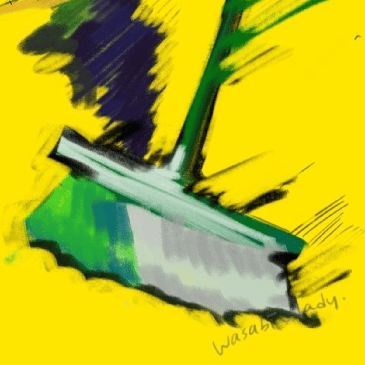 Gotta sweep, a green and white broom. While he is loves his job and is not afraid to bombastically announce it to the whole schoolhouse with his loud shouting.