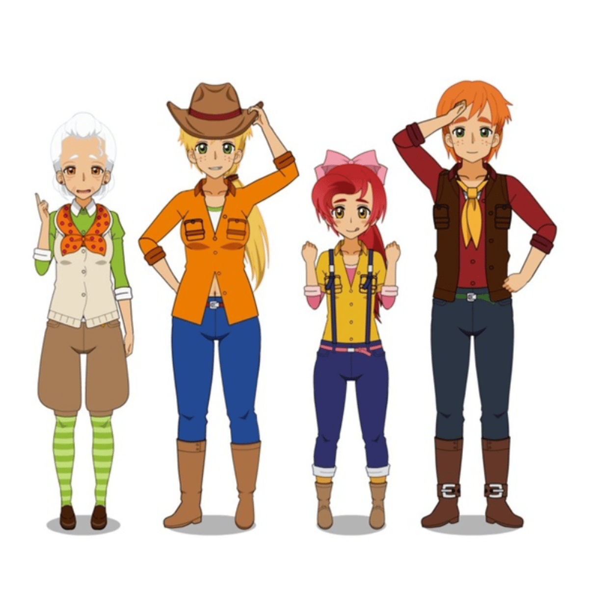 Granny Smith, apple bloom, big macintosh and applejack are human in kisekae from equestria girls