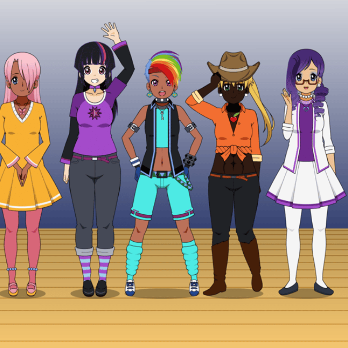 She a human from equestria girls in kisekae, wearing her orange shirt, belt, black jeans and brown boots