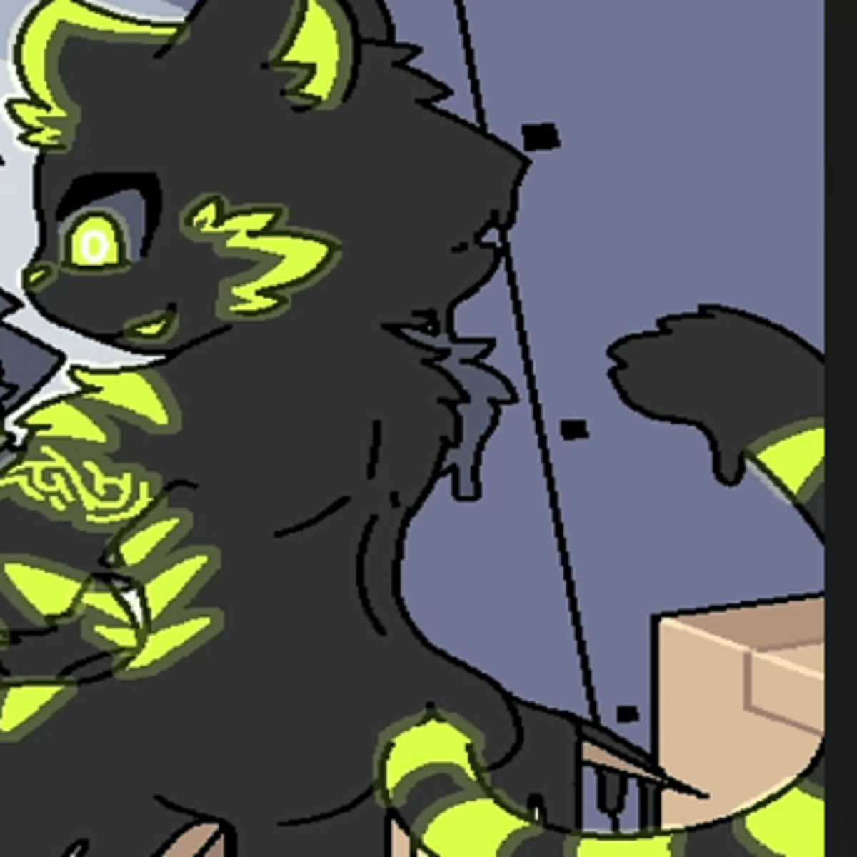 The Hypno Cat is a black cat the same size as the human. Its eyes, mouth, and stripes glow a sickly bright luminous green.
