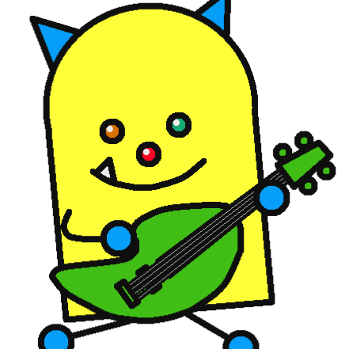 Oh hi I'm L.O. I'm the third member of The Happy Monster Band. What I play is the bass the best part is the strings! Do you wanna Rock and Roll if you do then great!