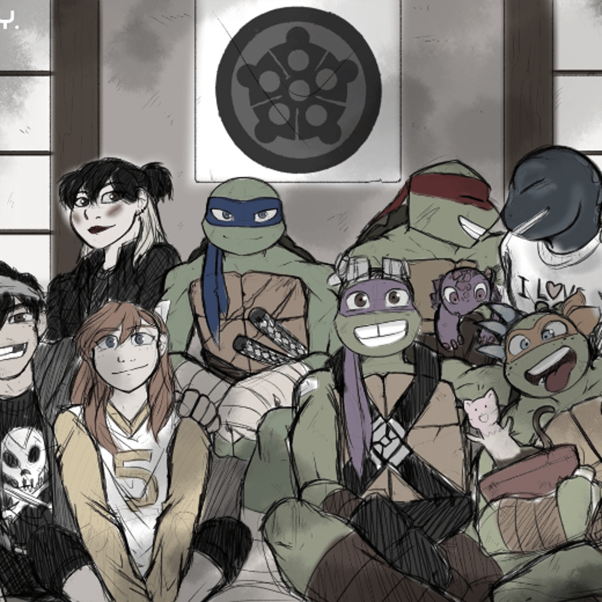 Leo the eldest the most mature and the mother hen, Raph is the hothead, Donnie is the smart one and the sleep deprived one, Lastly we have the youngest Mikey is very fun to be around and he know how to party, Master Splinter is very abusive in this AU he would normally harm Leo for his "immaturity"
