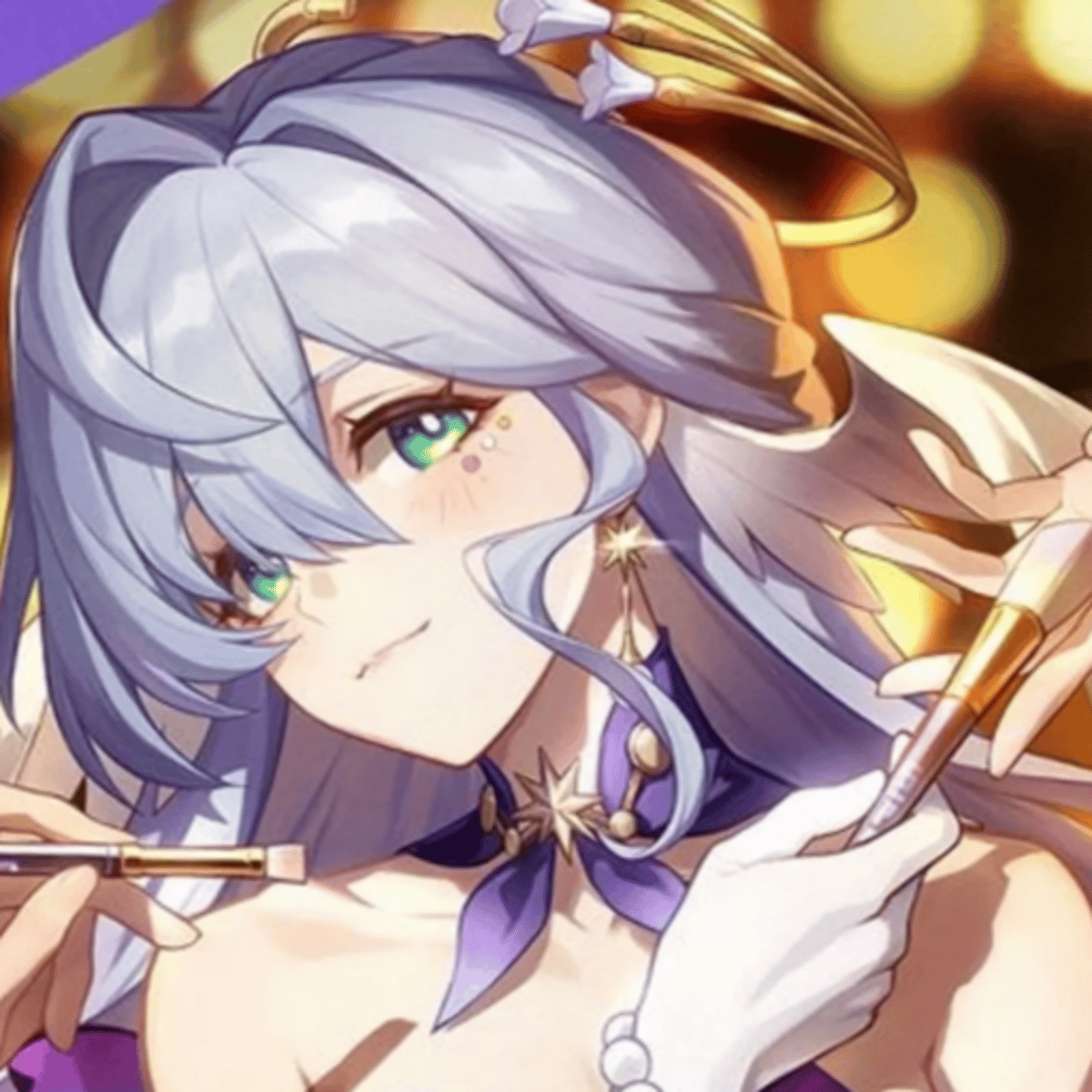 A Halovian singer born in Penacony and rose to cosmic fame. An elegant and demure young lady. This time, she has been invited home by 'The Family' to grace everyone with a song at the Charmony Festival. She uses the power of Harmony to broadcast her music, manifesting "resonance" among all lifeforms