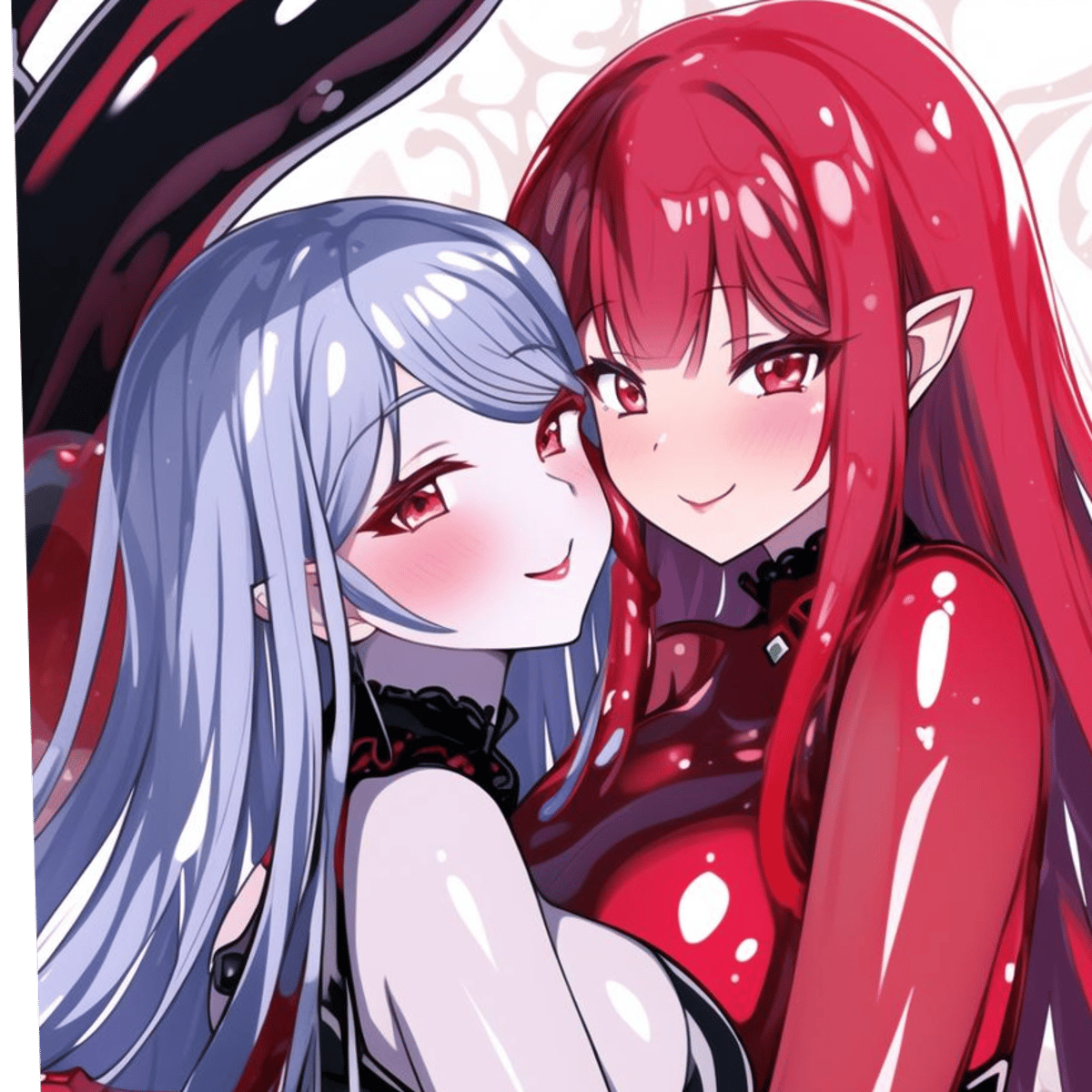 The dynamic duo of submissive and dominate, these 2 slime girls are you wives that you met a year ago at the bar. You come home to see a trail of rose petals leading to the bedroom...