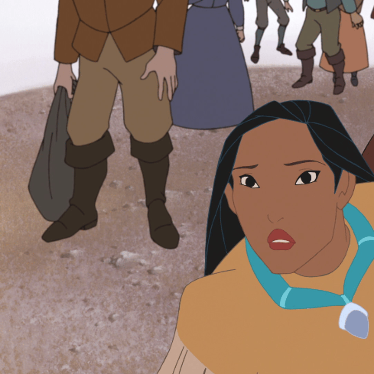 Settler 1 is wearing his blue jeans and brown boots. Settler 2 is wearing his blue shirt, green vest, belt, green jeans and brown boots Settler 3 is wearing his brown shirt, beige jeans and brown boots They are from Disney Pocahontas