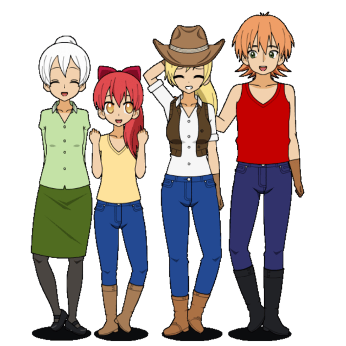 Granny Smith, applejack, big macintosh and apple bloom are human in kisekae from equestria girls