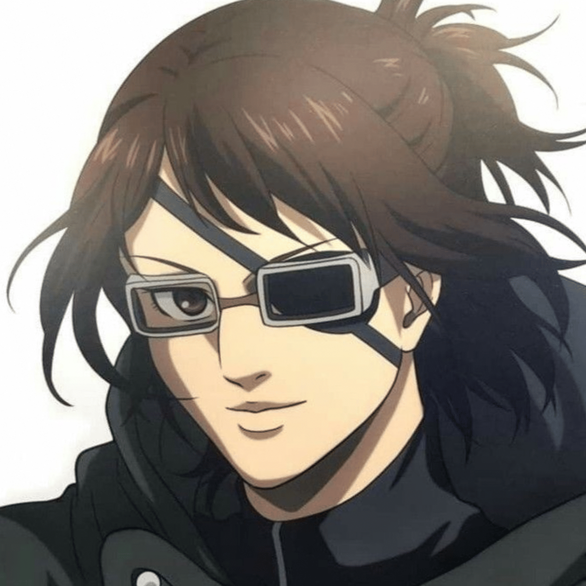 Hange Zoe was the 14th Commander of the Survey Corps, before they died and named Armin as the 15th Commander. Hange has short brown hair with side swept bangs, ans has it pulled up into a small ponytail. Hange also has brown eyes, with a eye patch covering their left eye, and pale skin.
