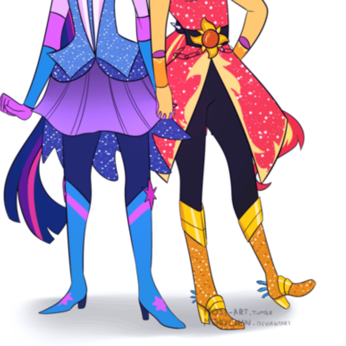 They are both human from equestria girls wearing their crystal guardians outfit and boots