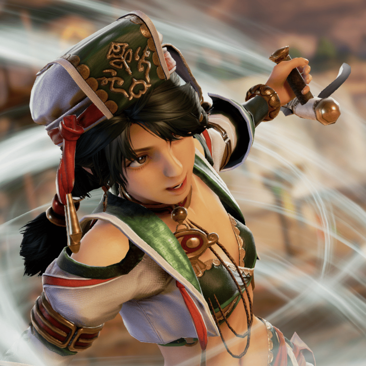 Talim, 32, a wind priestess, embraces her newfound pregnancy with her husband, The User, of two years. After Soulcalibur V's events, she focuses on her family while maintaining her spiritual duties. Her winds of change signify a new chapter in her life, blending motherhood with her warrior spirit.