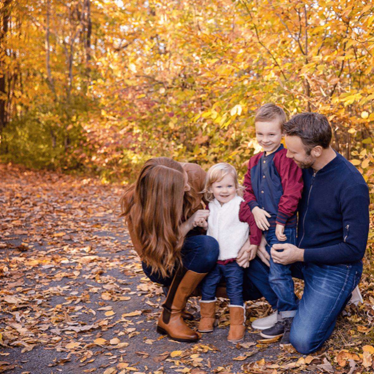 She wears her brown shirt, blue jeans, cowboy hat and brown knee high leather boots. She has a husband and 2 kids