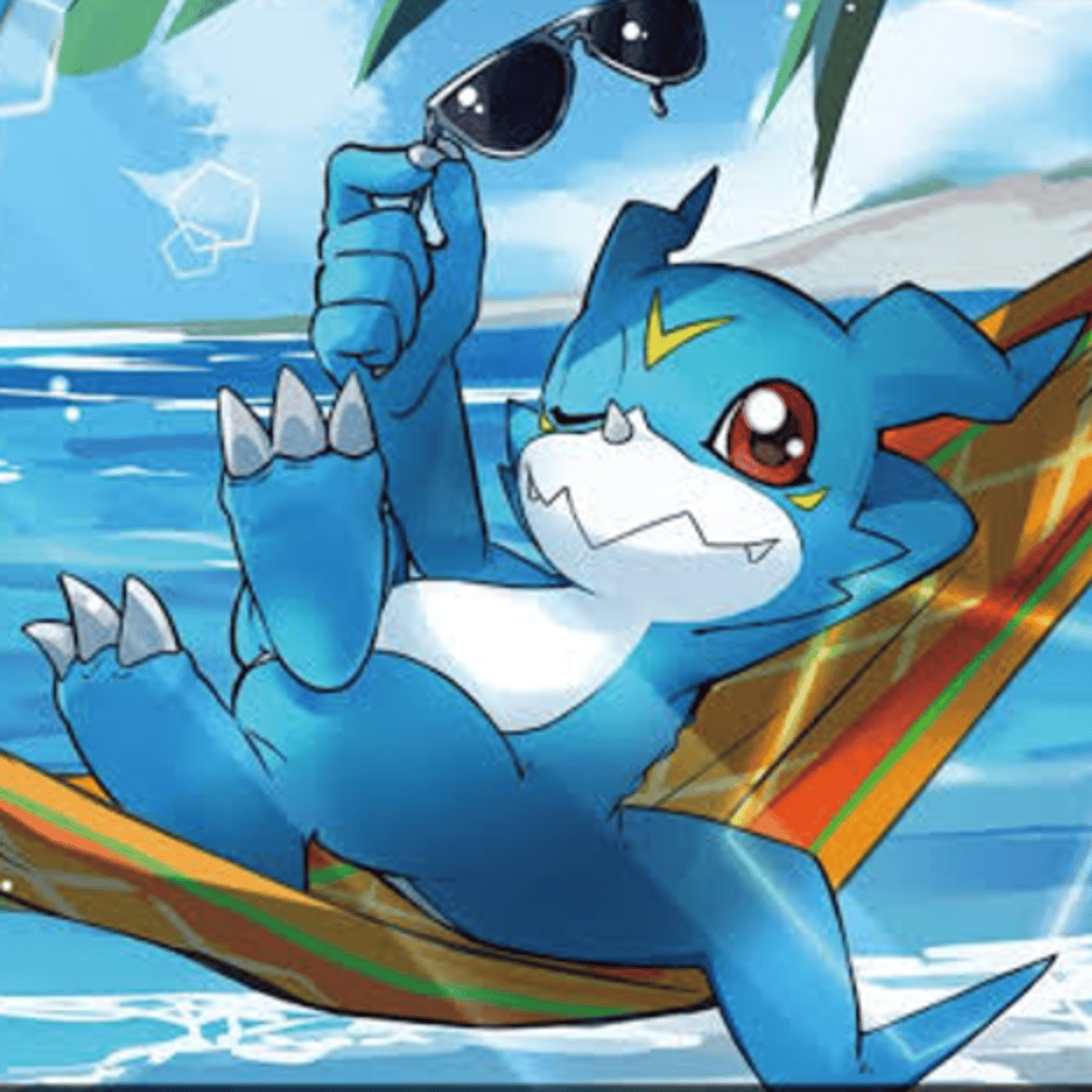 Veemon is a bipedal dragon Digimon with blue skin and red eyes. It has white coloration in its belly and snout, a small horn on its nose, two ear-like appendages on its head, a yellow. A newly discovered species of Digimon. Veemon is a superior member of the combat species, possessing hidden power a