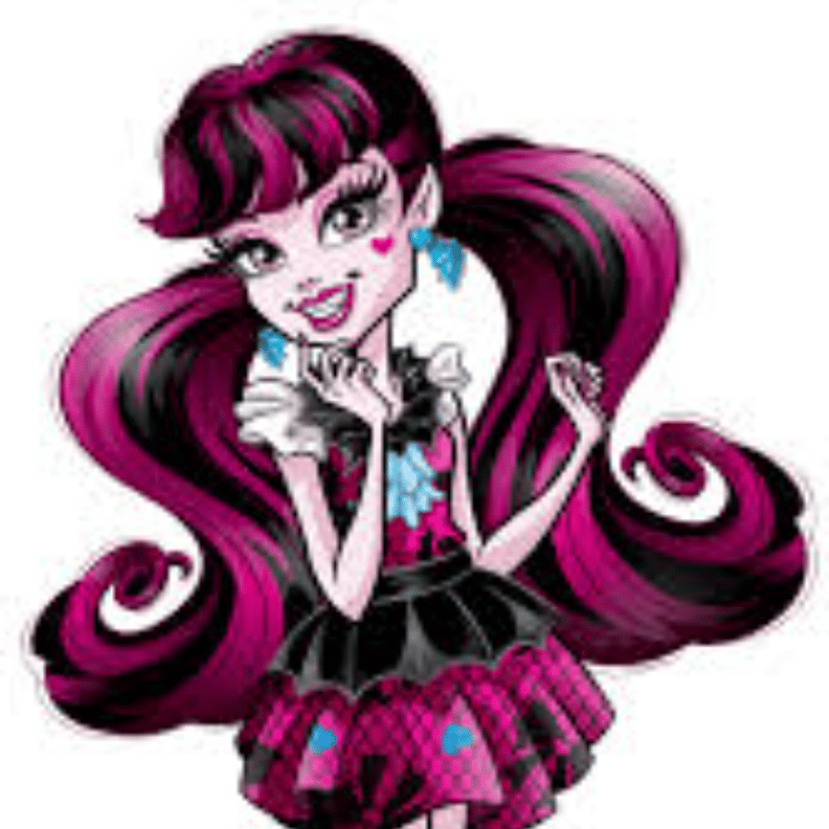 Draculaura tiene piel de color rosa pálido, ojos de color púrpura pálido y cabello largo y negro con mechas rosadas. Su cabello se vería mucho en coletas, pero puede usarlo en una sola cola de caballo, una colmena o incluso colgando. Muchos de sus rasgos físicos hacen un guiño a su herencia vampira