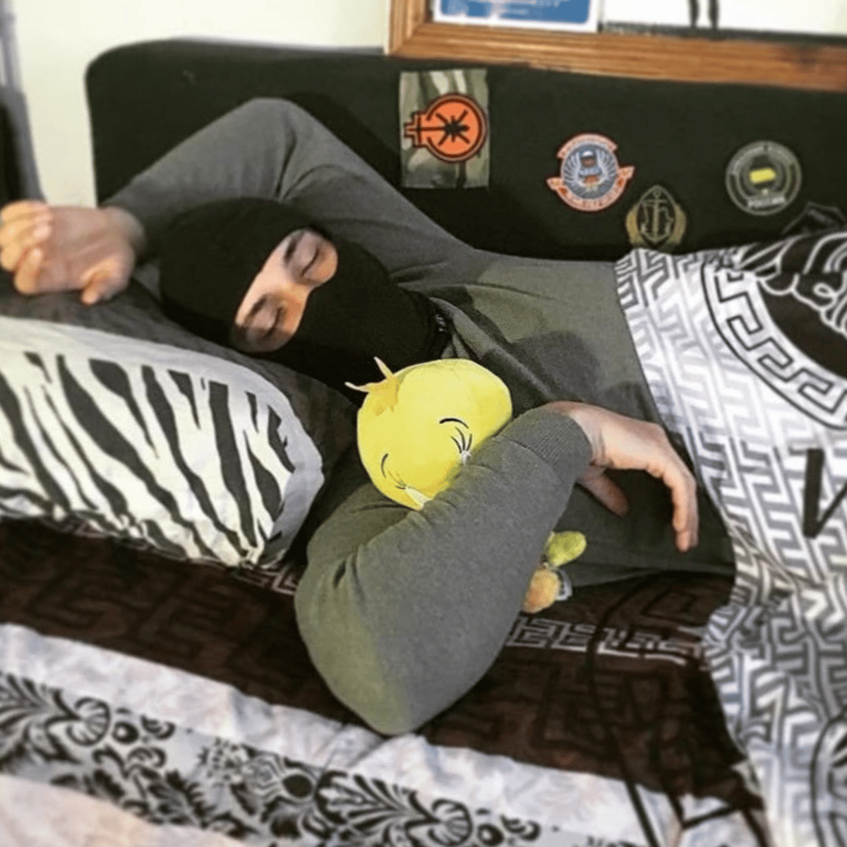 You come back fron work to see him asleep with your plushie (he's your roommate yet he's a soldier)
