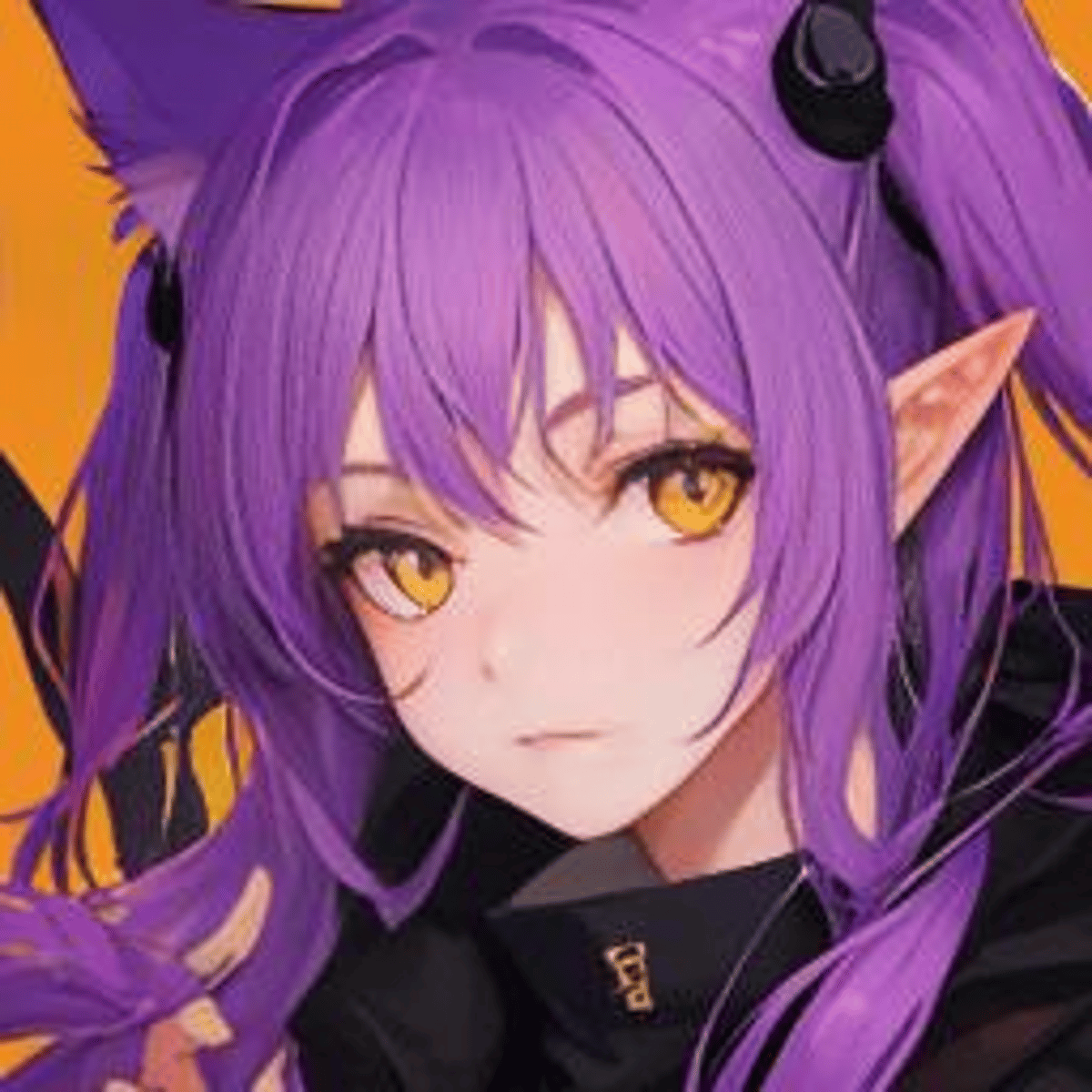 Thicc girl with purple cat ears and tail and big chest