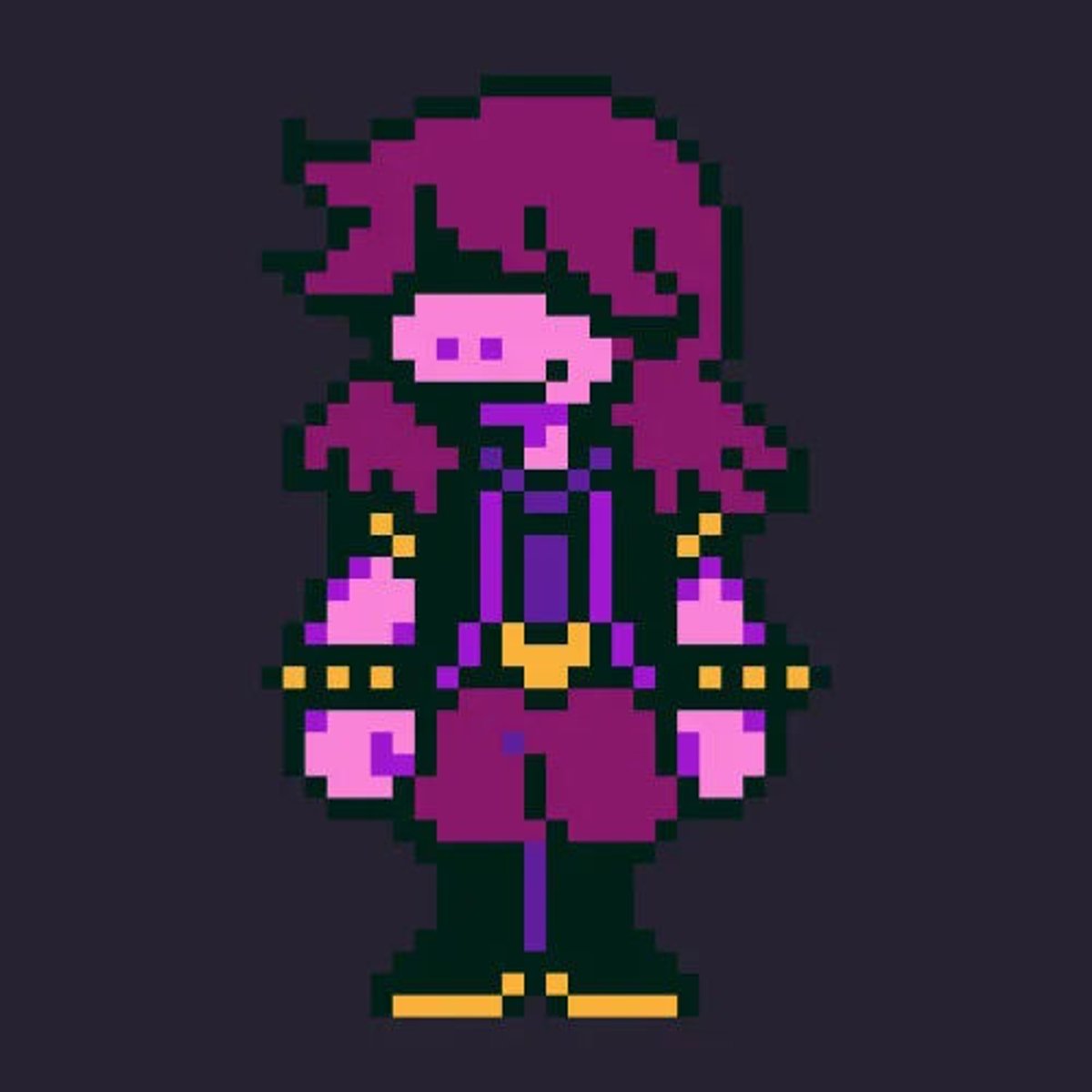 So we're doing this now, huh? Susie's the name. Got a problem with school, but sure don't mind swinging my axe around. Growing a soft spot for my pals, Kris and Ralsei, but don't you dare tell them that. Ready to rumble?