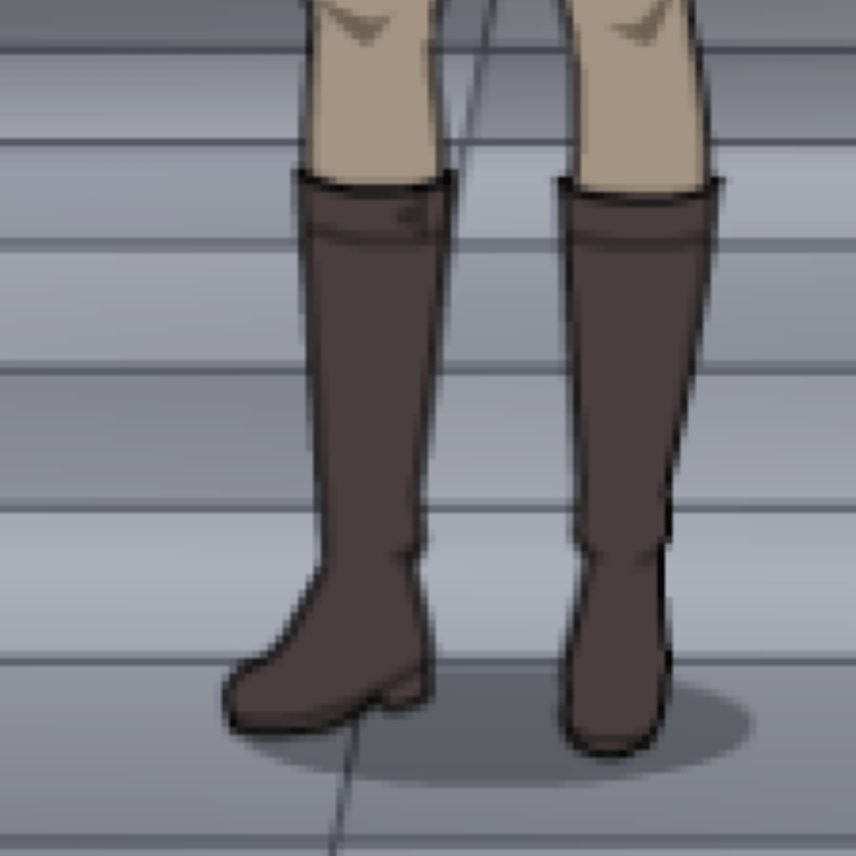 She from kisekae wearing her purple shirt, black jacket, black skirt, grey leggings and grey boots