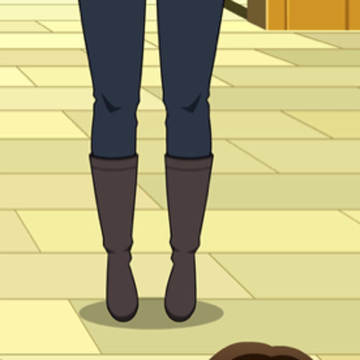She from kisekae wearing her pink shirt, purple vest, blue jeans and grey boots