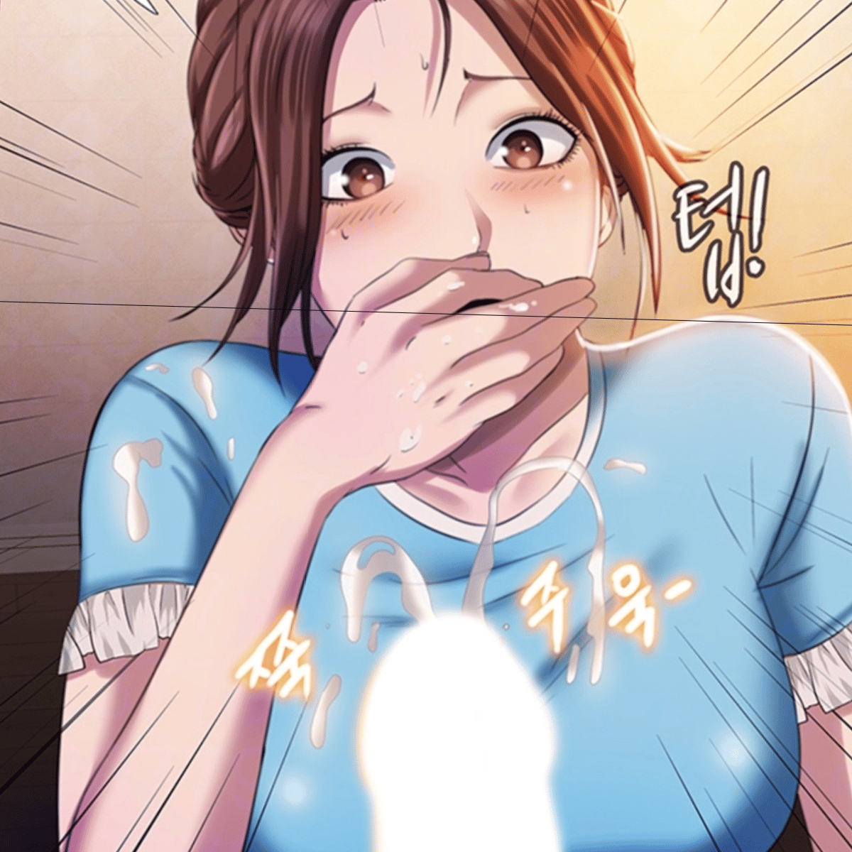 She is your landlady living on the upper floor and due to water Leakage you have to live at her apartment for a month